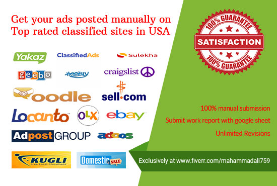 Design your ads and get posted them on top rated classified sitesHello there