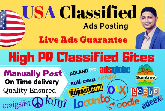 >>>>>>>>>>>Welcome to my Gig<<<<<<<<<<<Classified ads posting are most effective for any business or services. I am a professional Digital Marketer and eligible for this job. I know How to create ads posting live, also known me all secret techniques of classified ads posting. I have already registered 200+ top rated high PR classified sites in USA. So I can easily ads posting on these sites.