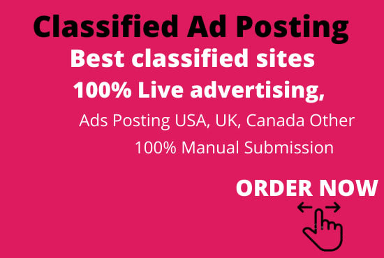 I can do provide classified ad posting in the USA, CANADA, UK AUSTRALIA, and EUROPE. I post your ad various of cities. classified ad posting is a great advertisement for fast sell your product. It built to reach your product or website to a real customer.