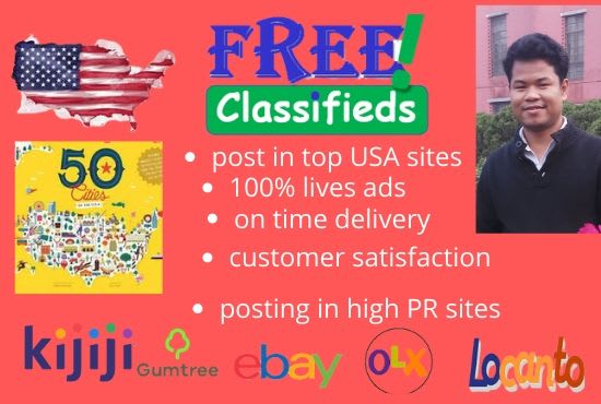 Welcome to my Fiverr Gig!I am a Digital Marketer. Classified Ad Posting is the best popular market sites in the USA. I can promote easily your business, service, traffics, to the targeted customers. I know every hidden tip, tricks, and procedure of this job.