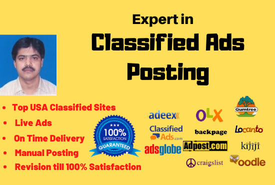 >>>>>>>>>>>>>>>>>>>>>>>>>WELCOME TO MY GIG<<<<<<<<<<<<<<<<<<<<<<<<<<I am a Digital Marketer. I have learned this job with confidence. I know how to post and publish live ads in Classified Sites. I have registered with few hundred Top Rated, High PR free USA Classifieds.