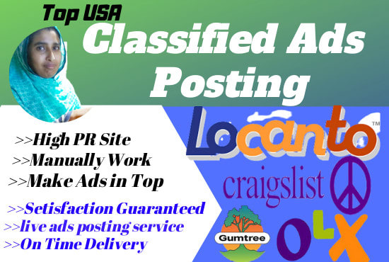>>>>>>>>>>>>>>>>>>>>>>>>>>Welcome To My Gig<<<<<<<<<<<<<<<<<<<<<<<<<<<<<<<I am a Digital Marketer. I have completed my course from an Outsourcing Institute. I have learned this work perfectly and I worked in many practical projects. I do where to post live and the secret techniques for this job. There are accounts on many famous classified sites in the USA. I know how to post on a classified side and reach a lot of people. I do how to make any ads lives.