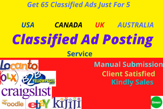 I will promote your ad and top class Classified ad posting sites manually to touch a lot of visitors and easily promote your business,your products or service worldwide submission with top rated classified sites.