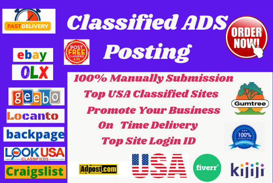 <=><=><=><=><=><=><=> Well Come To My Classified Posting gig<=><=><=><=><=><=><=>Classified Ads are the best way of advertising any product or business globally. It helps to make contact and offer to the expected customers. The best benefit of using classified ad posting service is to save time and money, increase sales and generate leads.